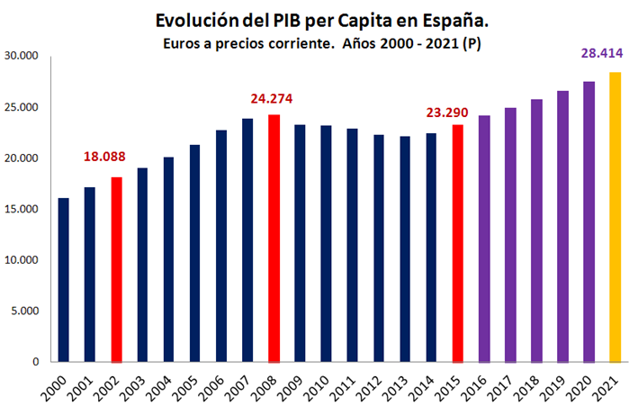 Por otra parte, vemos la evolución del PIB los últimos años, lo que augura unas buenas perspectivas de cara al 2022.